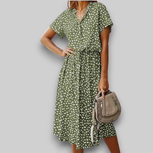Ready for your warm-weather escapades? This charming dress, crafted from soft, breathable cotton, ensures you stay cool and fashionable throughout the summer. With graceful sleeves and a tailored A-line silhouette, it's perfect for any event. Infuse a touch of classic appeal into your wardrobe with this enduring design!